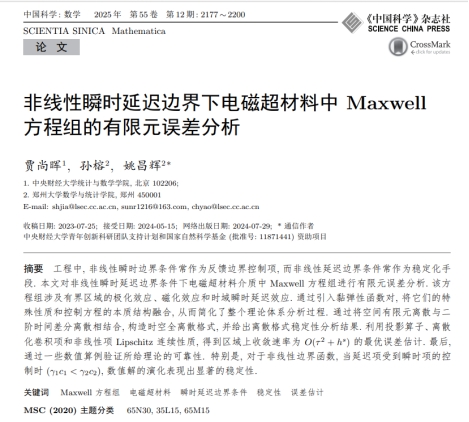成果速递第14期:非线性瞬时延迟边界下电…2026-01-06工程中,非线性瞬时边界条件常作为反馈边界控制项,而非线性延迟边界条件常作为稳定化手段。本文对非线性瞬时延迟边界条件下电磁超材料介质中Maxwell方程组进行有限元误差分析。该方程组涉及有界区域的极化效应、磁化效应和时域瞬时延…