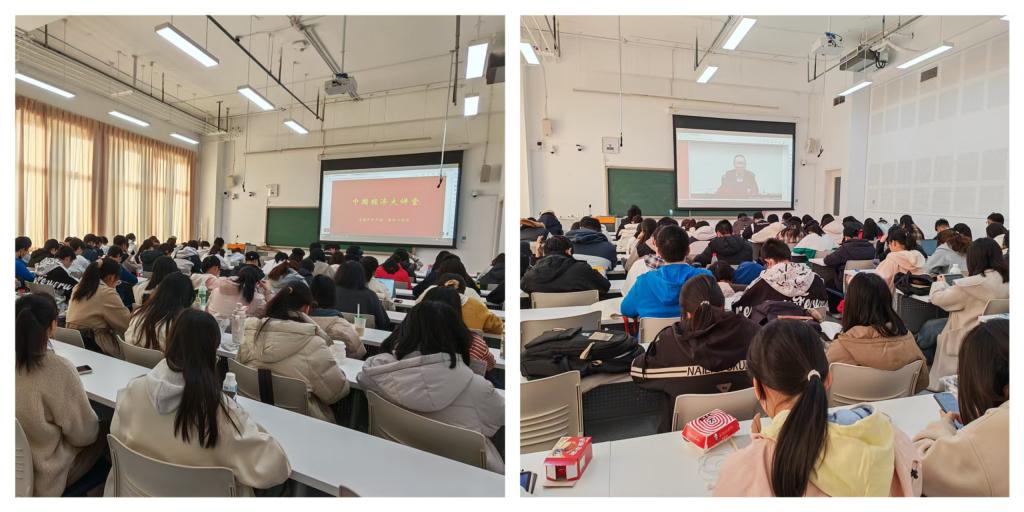 根据讲座观看要求,学院精心统筹安排观看形式。教师群体结合自身工作节奏,采用自行观看的方式灵活参与学习,确保不影响日常教学与科研工作的同时,充分汲取讲座核心内容。学生群体则采用“部分集中、部分自主”的多元化观看模式,其中集中观看现场秩序井然,参与学生人数众多,大家专注投入,认真记录讲座重点,展现了我院学子良好的学习风貌与纪律素养。