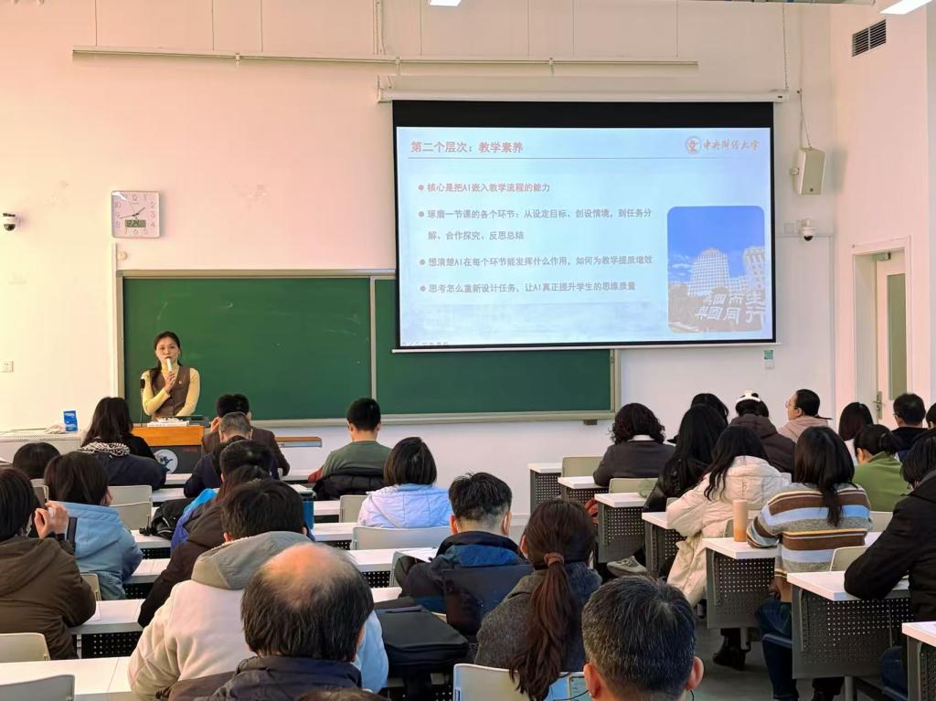 会上,关蓉老师以“人工智能赋能高质量教学”为题,结合党的二十届四中全会通过的《中共中央关于制定国民经济和社会发展第十五个五年规划的建议》提出,全面实施“人工智能+”行动,深入分析了AI与教育教学融合的时代背景与现实意义。她指出,教师不仅是知识传授者,更是学生适应智能时代的引导者。教师要积极回应社会对人才创新能力与实践能力的新要求,主动拥抱AI与教学的融合。